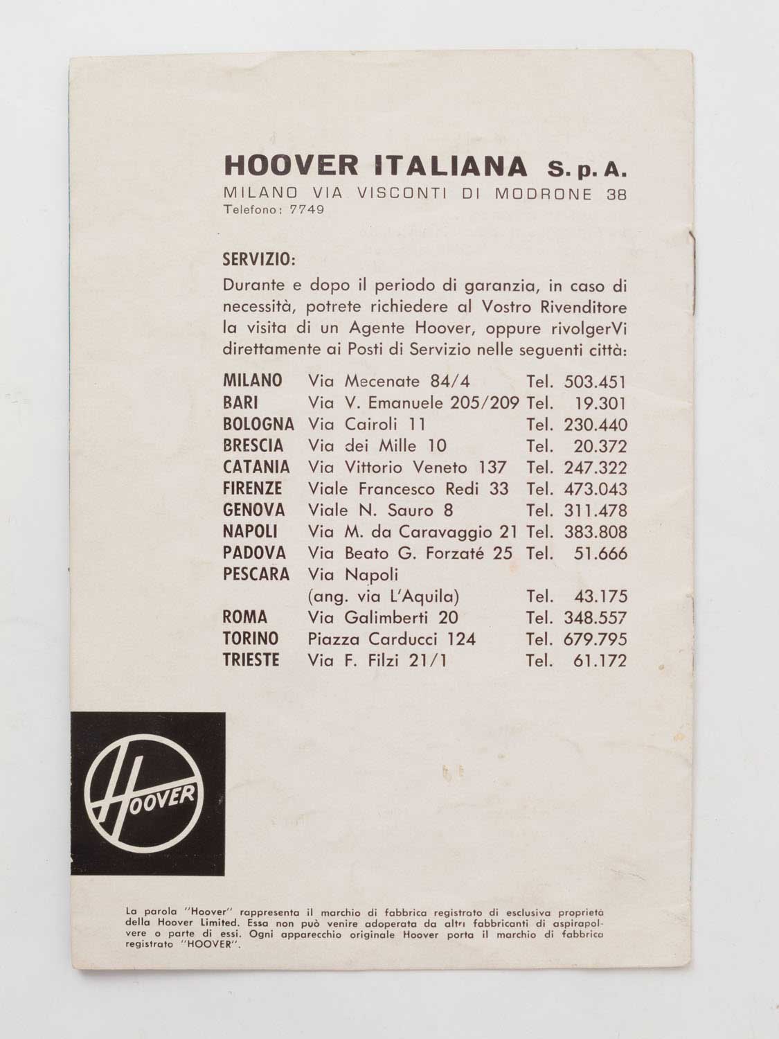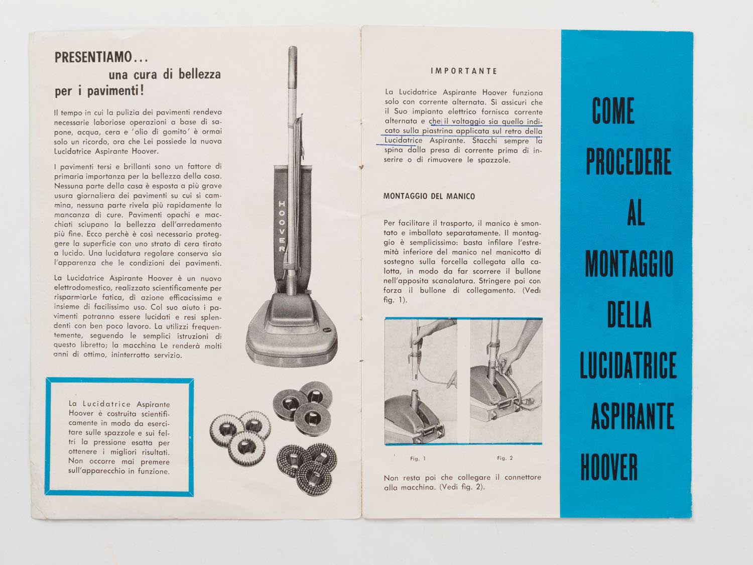 HOOVER modello 5016, manuale di istruzioni, anni 60
