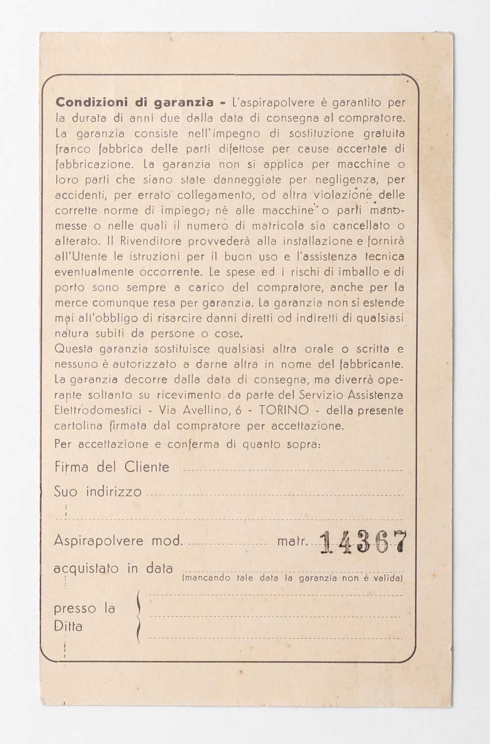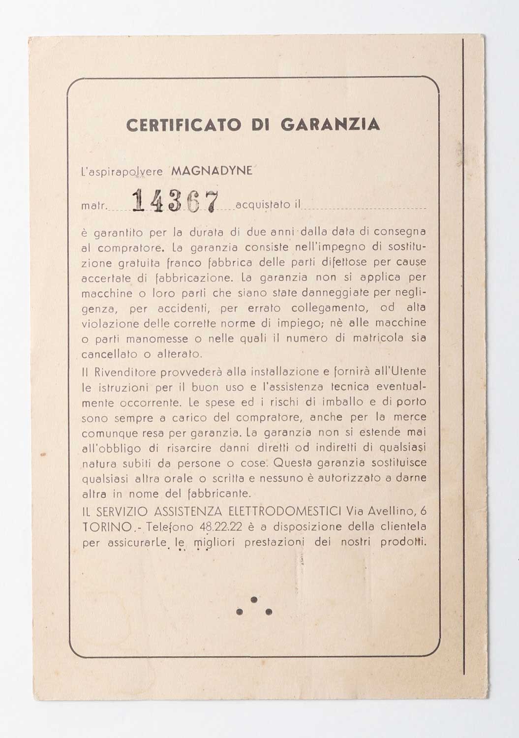 Foglio di istruzioni e Certificato di garanzia