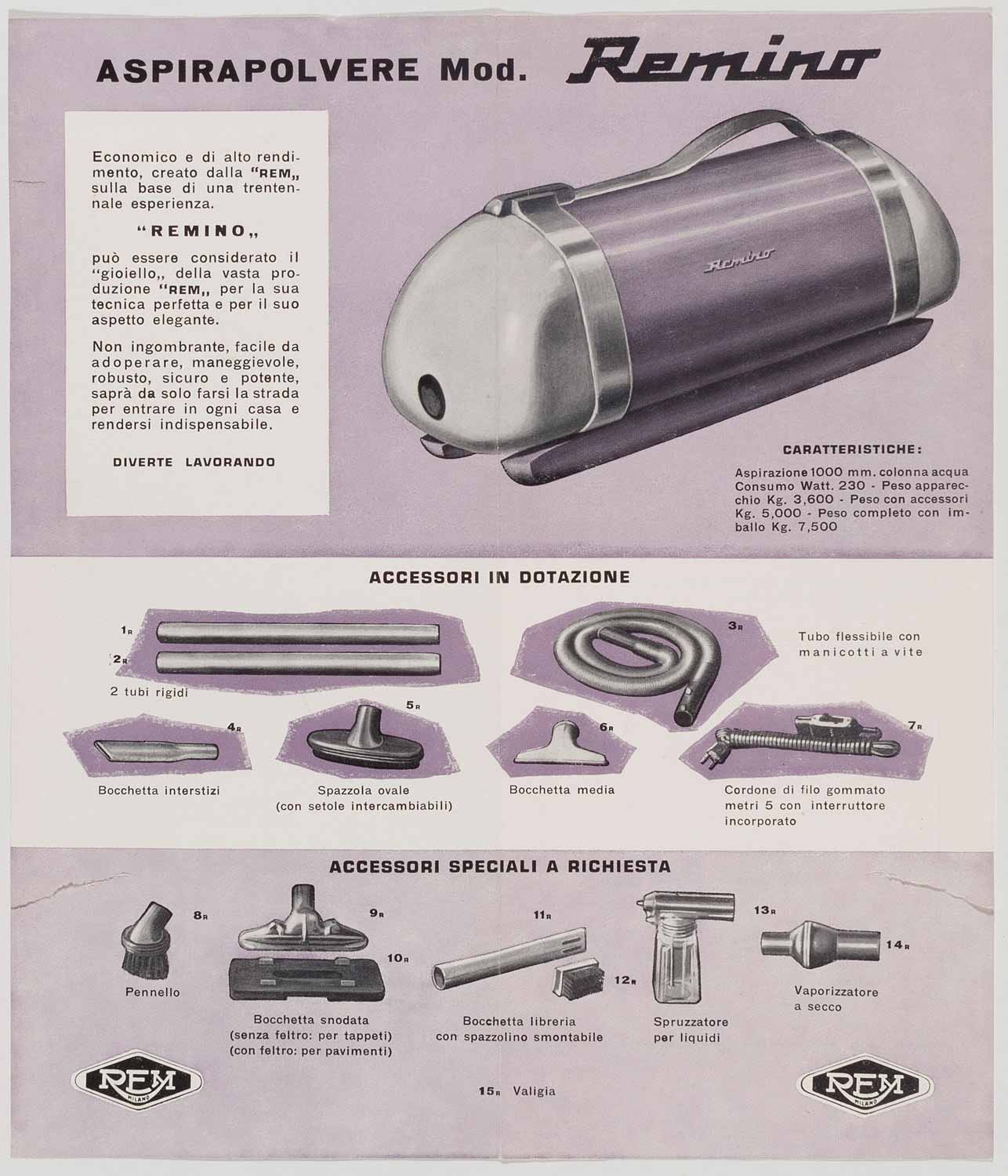 REM modello "Remino", Manuale di istruzioni, anni '50