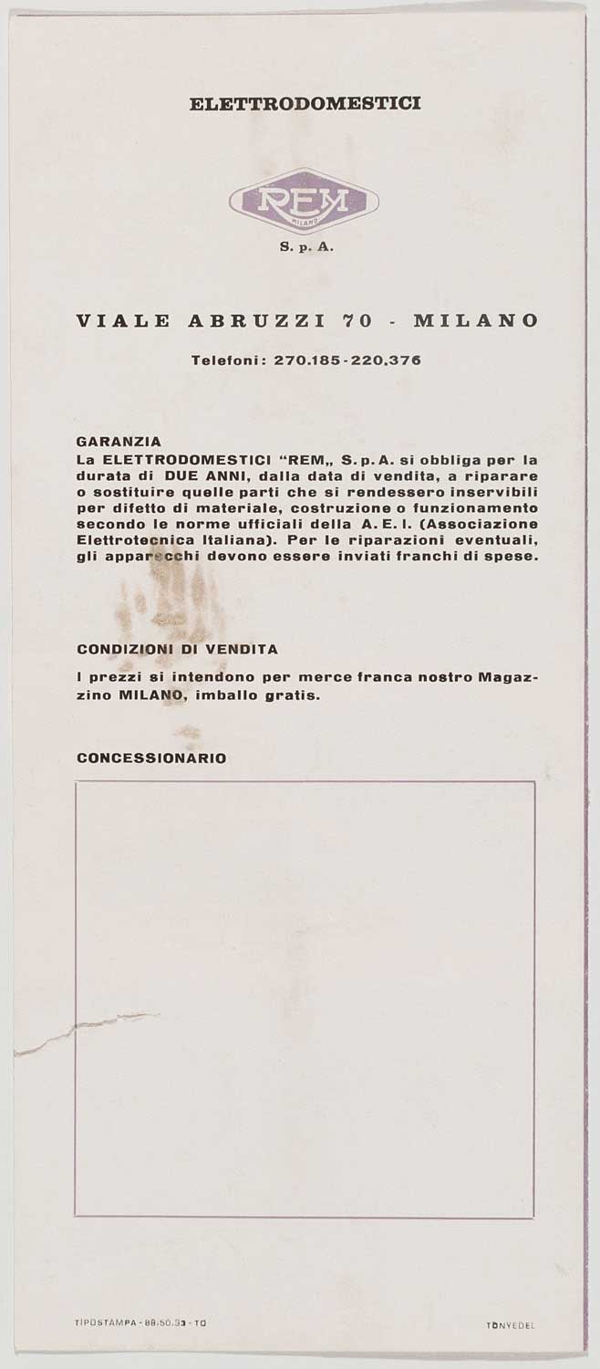 REM modello "Remino", Manuale di istruzioni, anni '50